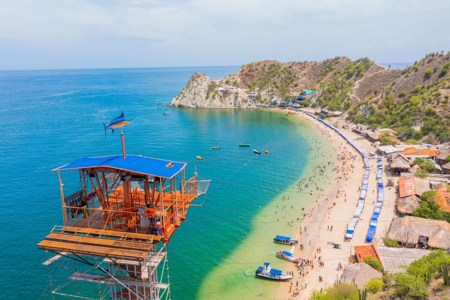 Playa Blanca es una de las playas más famosas y populares de Santa Marta, Colombia. Playa Blanca se encuentra en el distrito turístico de El Rodadero, a unos pocos kilómetros al sur del centro de Santa Marta. Es accesible en lancha desde El Rodadero o a través de un camino que rodea la colina. La playa es conocida por su arena blanca y aguas cristalinas. Es un lugar ideal para disfrutar del sol y el mar Caribe en un entorno paradisíaco. En Playa Blanca, los visitantes pueden disfrutar de una variedad de actividades acuáticas, como el snorkel, el buceo, y paseos en banana. También es un excelente lugar para nadar debido a sus aguas tranquilas. La playa cuenta con varios restaurantes y bares donde se pueden degustar platos típicos de la región, especialmente mariscos. También hay opciones de alquiler de sombrillas y sillas de playa para mayor comodidad de los visitantes.